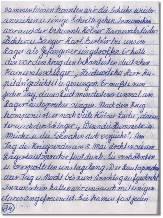 Handschriftliches Original, dort Seite 84 im Teil "Kriegsgefangenschaft"