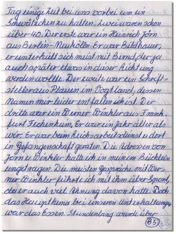 Handschriftliches Original, dort Seite 85 im Teil "Kriegsgefangenschaft"