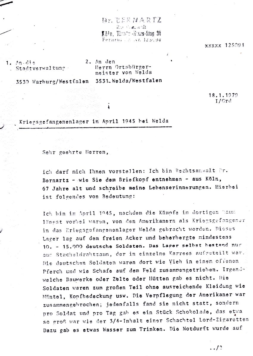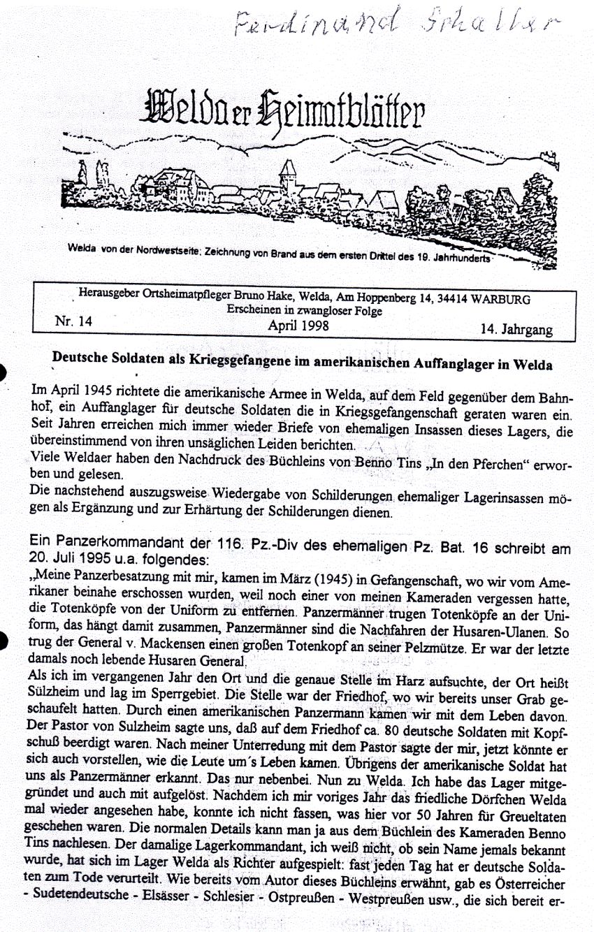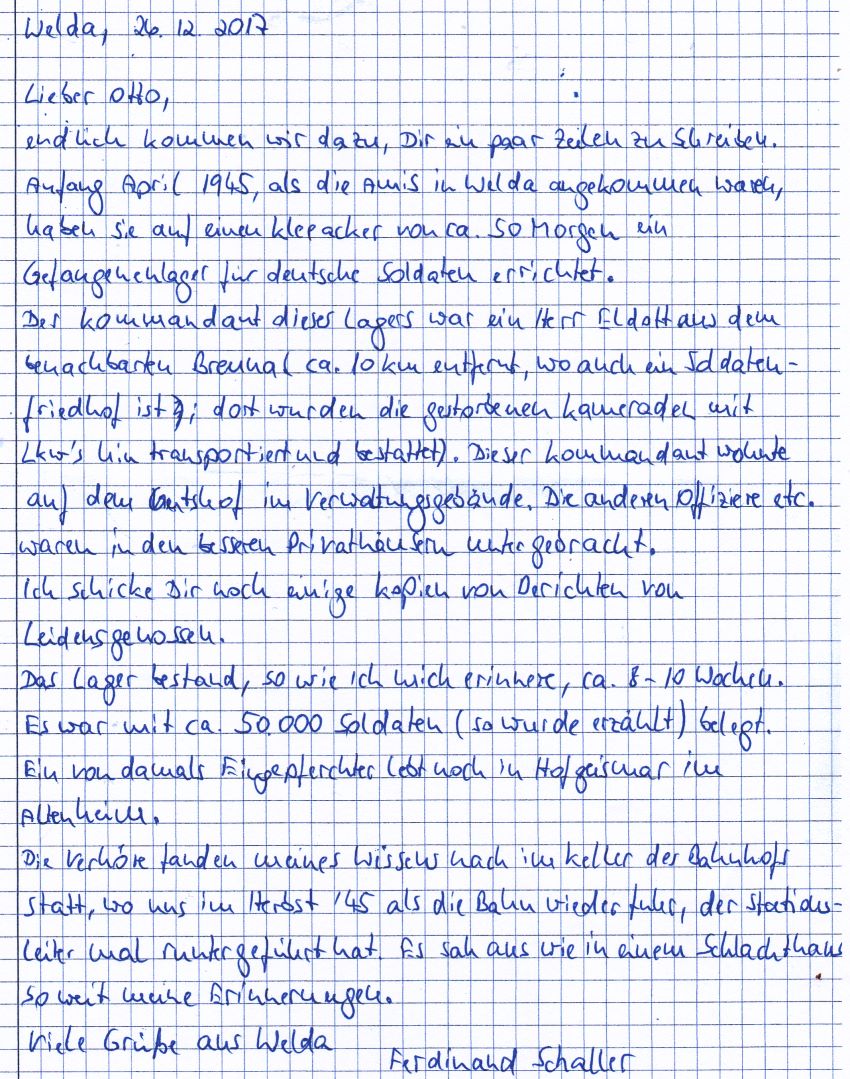 Brief von Herrn Ferdinand Schaller aus Welda.