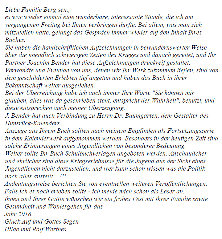 Brief von Hilde und Rolf Werthes.